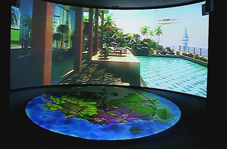 在城市規(guī)劃館中,為了能夠更好的展示城市的面貌,很多規(guī)劃館會選擇弧幕投影來展示城市的風(fēng)采。因為弧幕投影超大的畫面以及震撼的視聽感受都能讓人充分的感受城市的風(fēng)光以及發(fā)展宏圖。
