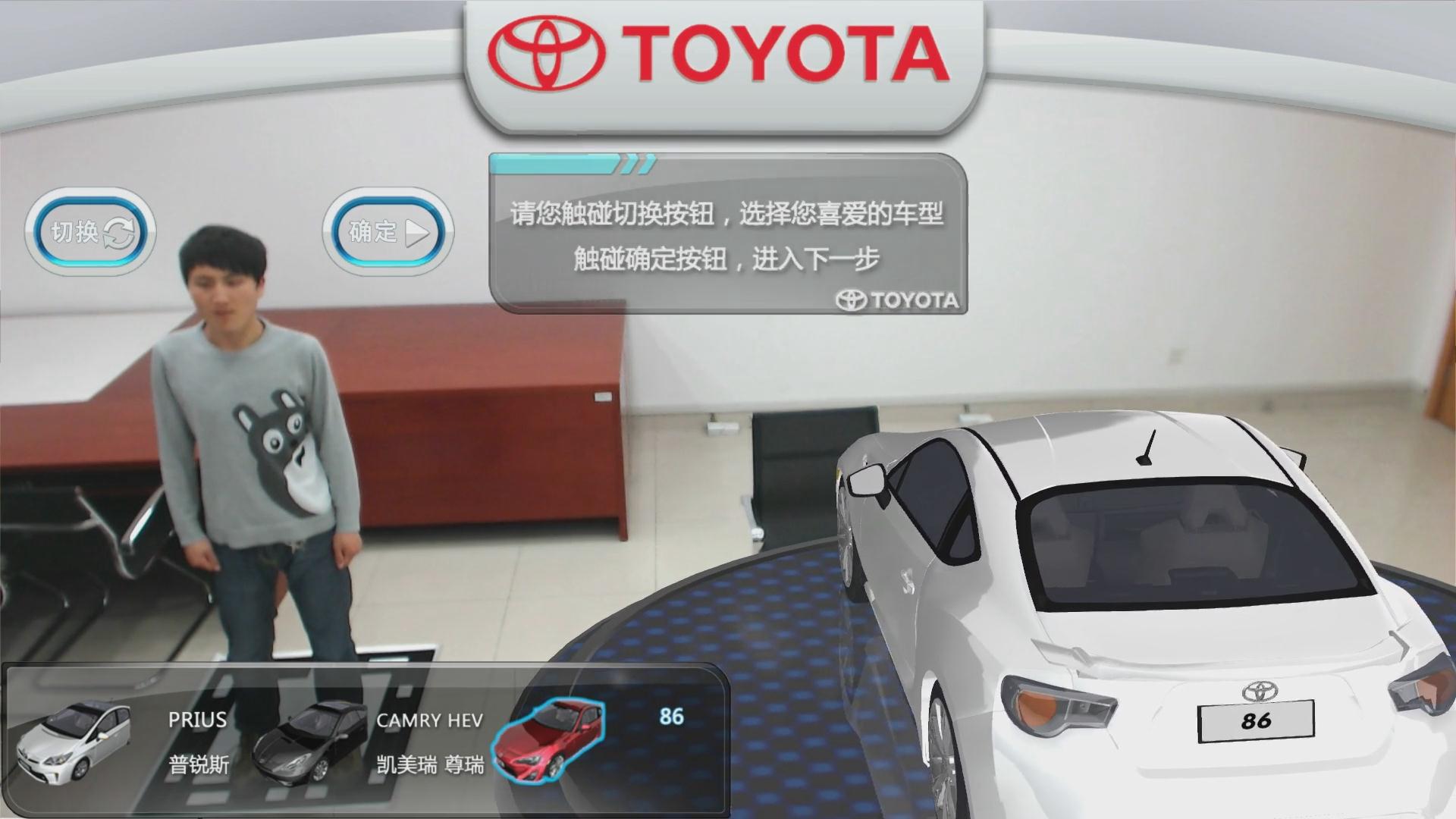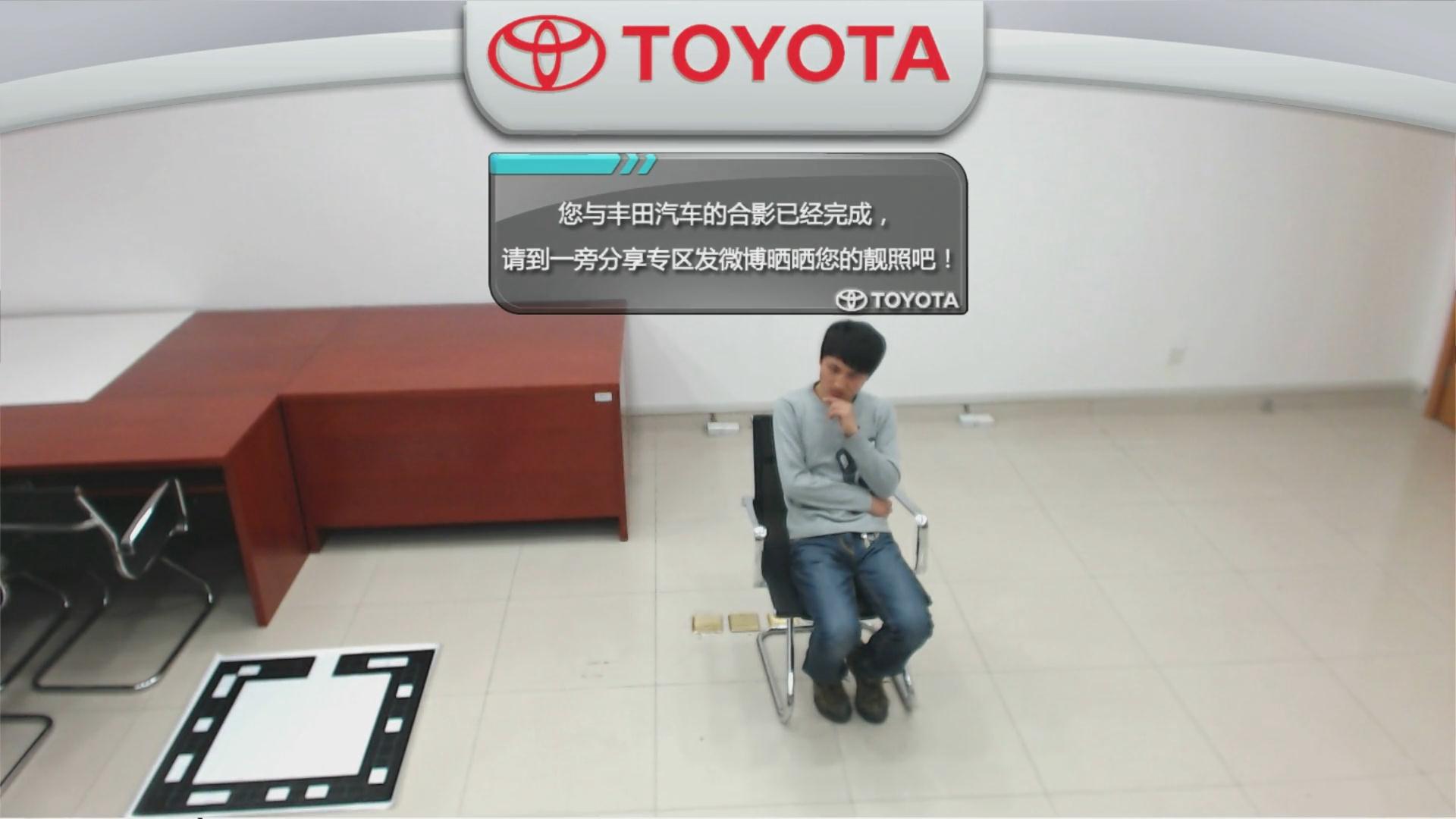 上海車展豐田汽車“豐速之城”是一項有新意的AR增強現實技術,當體驗者進入到體驗區內,游戲就開始了,首先選擇自己喜愛的車型和顏色,然后體驗置身于車內的形式,前往賽道進行賽車游戲,游戲結束后可以與豐田汽車合影,只需要分享到微博就可以看到您的靚照。這項AR游戲能夠吸引大量群眾前臺體驗,非常有創意且科技感強。