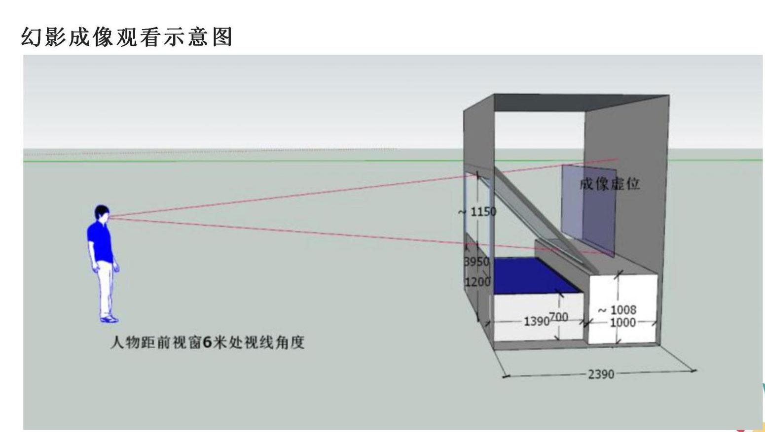 一、硬件的呈現方式,根據現場情況制定是下兩圖中的哪種方式。投影面是在上方還是下方。硬件制定過程中要大致注意以下參數。(1)成像載體(2)長、寬、高(3)可視窗口大小、高度、成像面大小(4)模型大小長、寬、高。二、模型設計。三、劇本設計 四、現場拍攝 五、后期制作。制作完成后最關鍵的步驟是要進行對位校準,一些稍微復雜的場景都需要后期人員去現場進行精準對位。