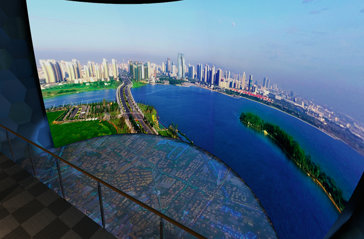 影片格式:弧幕數字沙盤的影片也是設計方案中需要注意的很重要的一點,因此影片通常由火米互動定制,這樣能夠保證影片的視角跟弧幕的弧度相同。